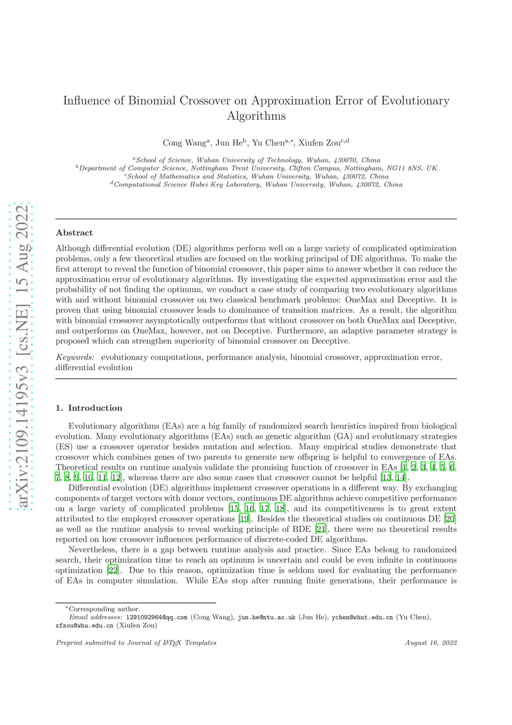Influence of the Binomial Crossover on Performance of Evolutionary