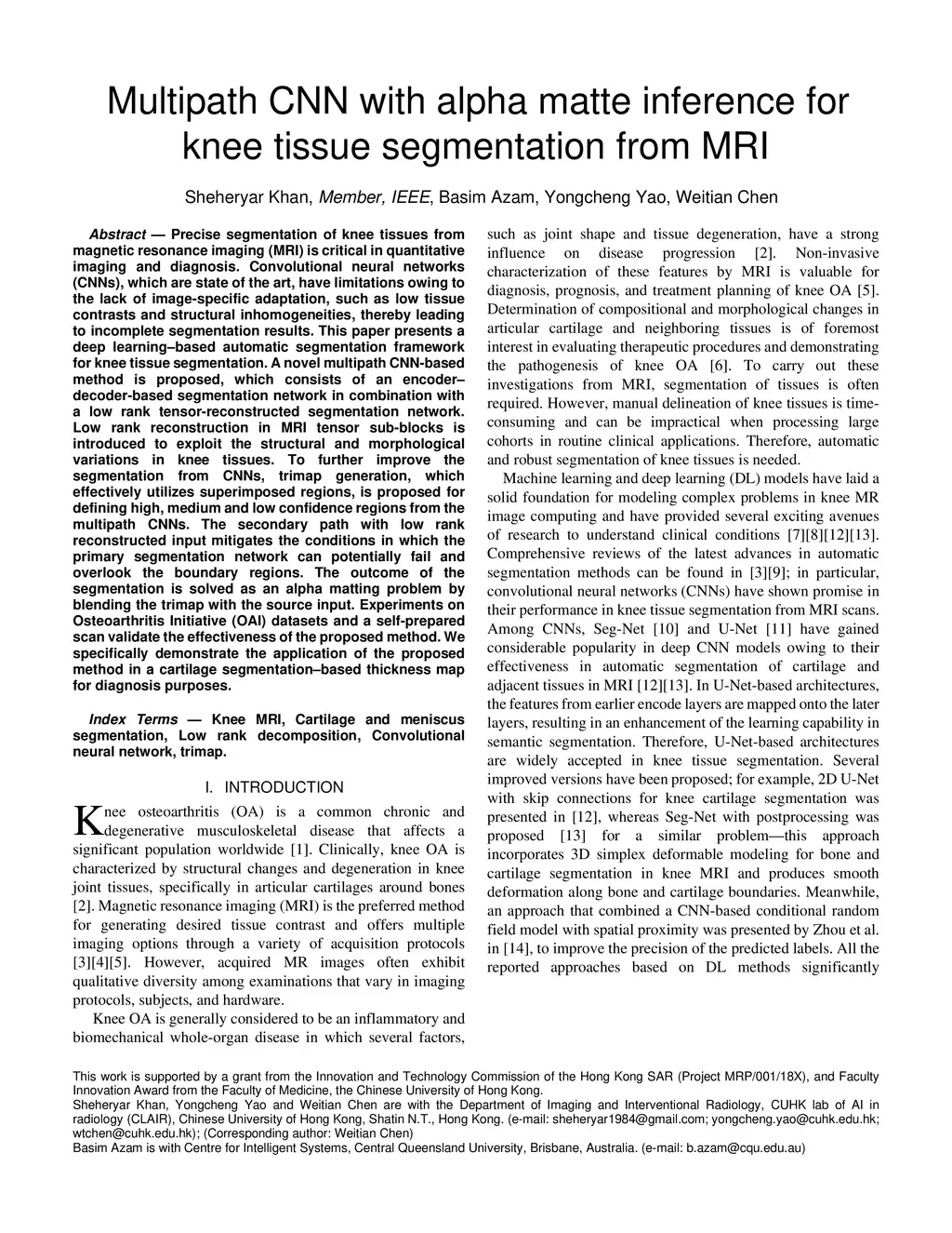 Multipath CNN with alpha matte inference for knee tissue segmentation