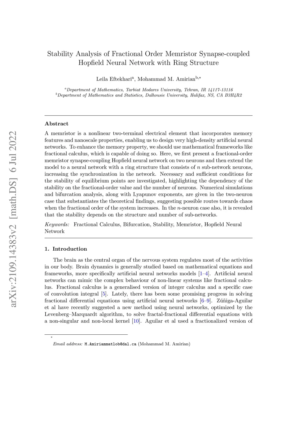 Stability Analysis of Fractional Order Memristor Synapse-coupled
