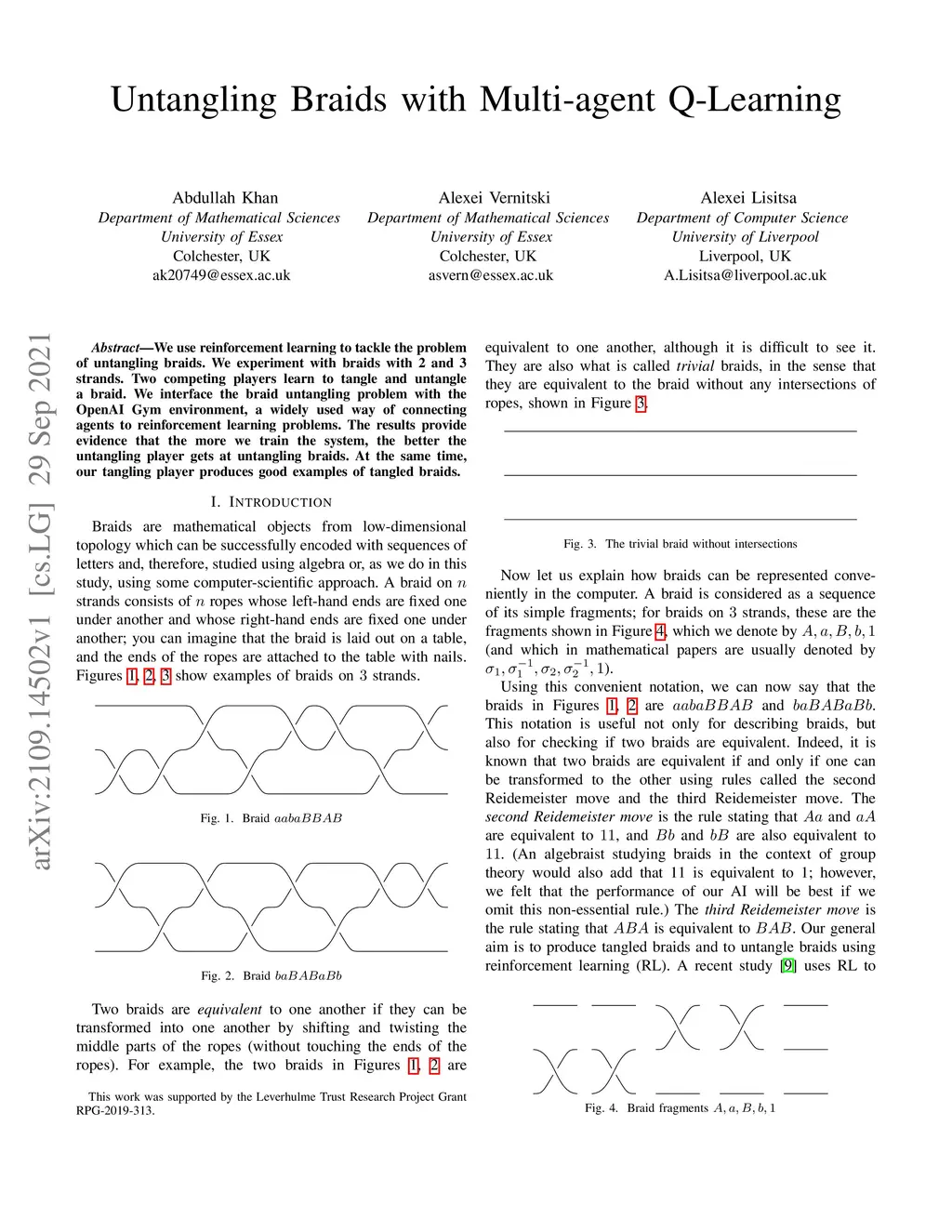 We use reinforcement learning to tackle the problem of untangling braids. We experiment with braids with 2 and 3 strands. Two competing players learn to tangle and untangle a braid. We interface the braid untangling problem with the OpenAI Gym environment, a widely used way of connecting agents to reinforcement learning problems. The results provide evidence that the more we train the system, the better the untangling player gets at untangling braids. At the same time, our tangling player produces good examples of tangled braids.