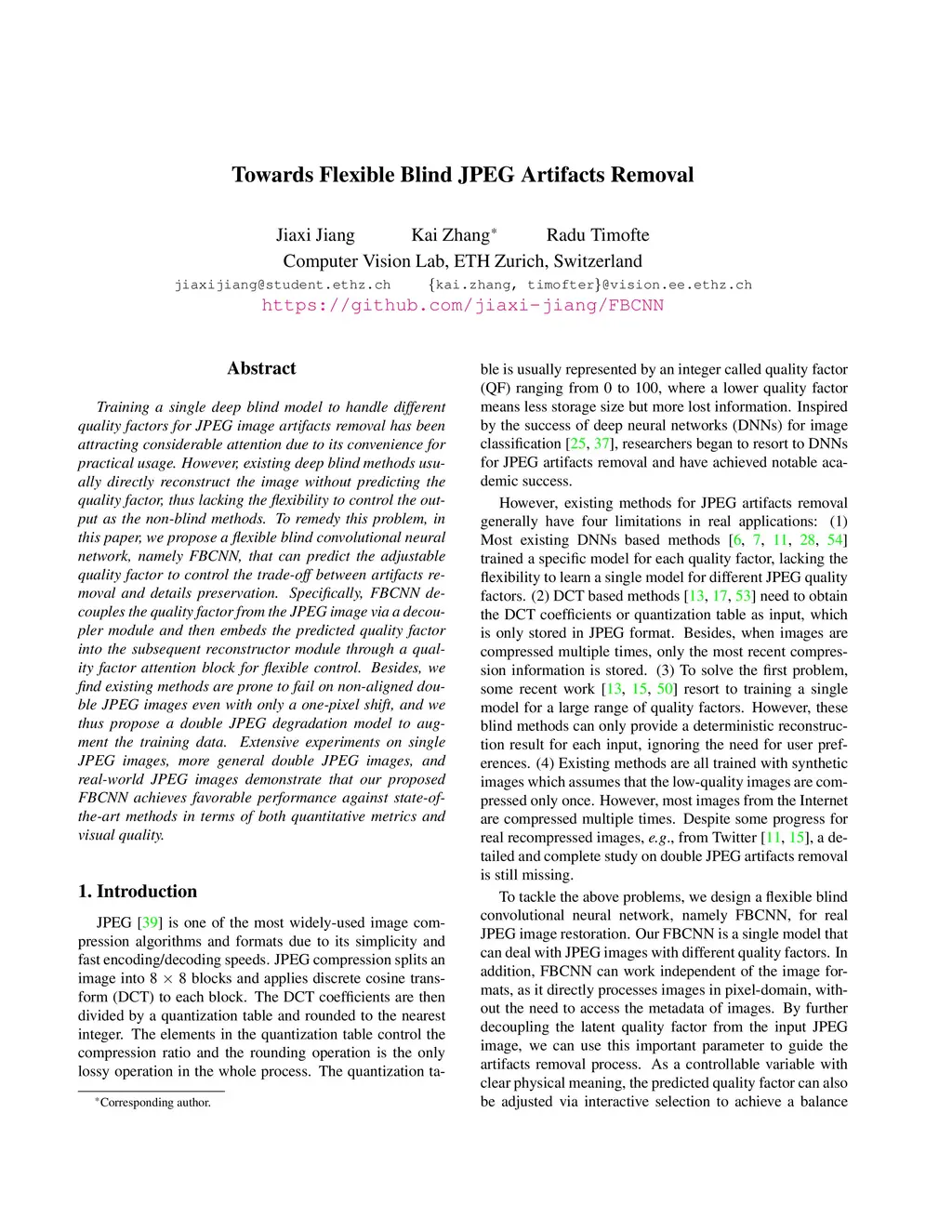 Training a single deep blind model to handle different quality factors for JPEG image artifacts removal has been attracting considerable attention due to its convenience for practical usage. However, existing deep blind methods usually directly reconstruct the image without predicting the quality factor, thus lacking the flexibility to control the output as the non-blind methods. To remedy this problem, in this paper, we propose a flexible blind convolutional neural network, namely FBCNN, that can predict the adjustable quality factor to control the trade-off between artifacts removal and details preservation. Specifically, FBCNN decouples the quality factor from the JPEG image via a decoupler module and then embeds the predicted quality factor into the subsequent reconstructor module through a quality factor attention block for flexible control. Besides, we find existing methods are prone to fail on non-aligned double JPEG images even with only a one-pixel shift, and we thus propose a double JPEG degradation model to augment the training data. Extensive experiments on single JPEG images, more general double JPEG images, and real-world JPEG images demonstrate that our proposed FBCNN achieves favorable performance against state-of-the-art methods in terms of both quantitative metrics and visual quality.