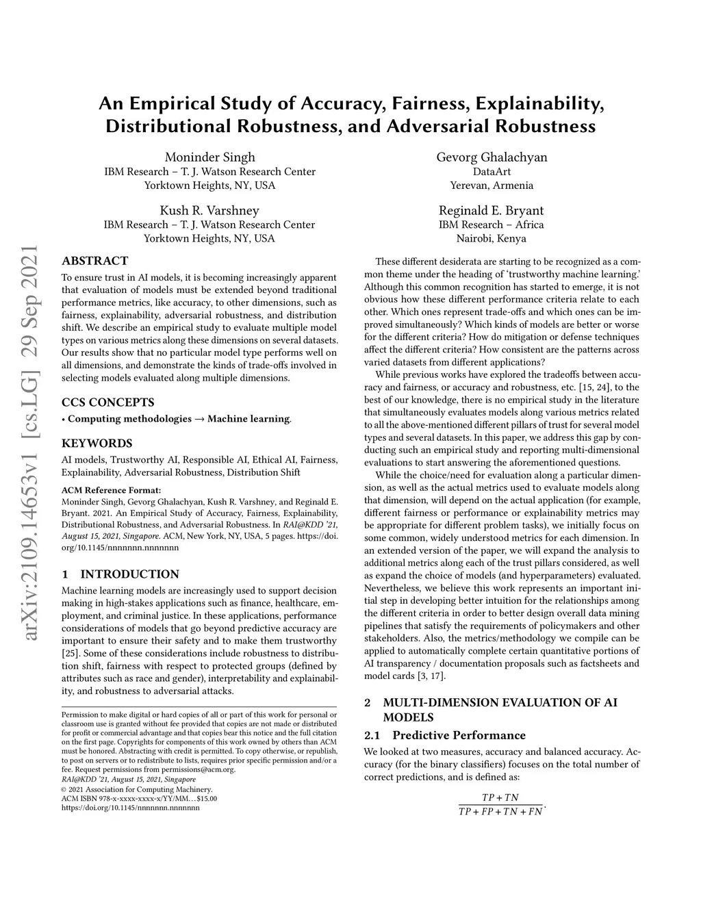 To ensure trust in AI models, it is becoming increasingly apparent that evaluation of models must be extended beyond traditional performance metrics, like accuracy, to other dimensions, such as fairness, explainability, adversarial robustness, and distribution shift. We describe an empirical study to evaluate multiple model types on various metrics along these dimensions on several datasets. Our results show that no particular model type performs well on all dimensions, and demonstrate the kinds of trade-offs involved in selecting models evaluated along multiple dimensions.