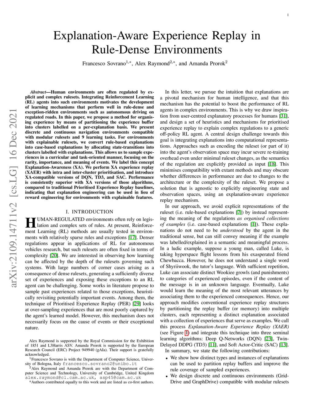 Explanation-Aware Experience Replay in Rule-Dense Environments
