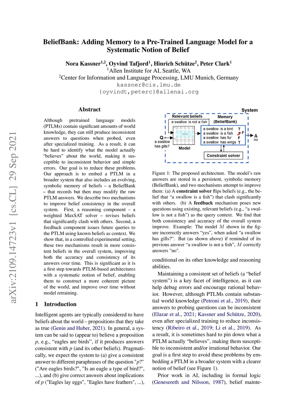 BeliefBank: Adding Memory to a Pre-Trained Language Model for a
