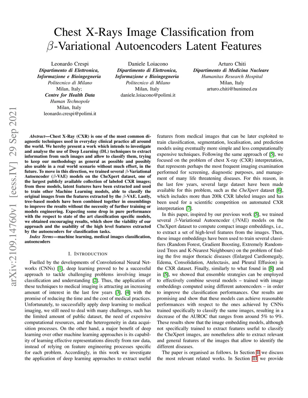 Chest X-Rays Image Classification from beta-Variational Autoencoders