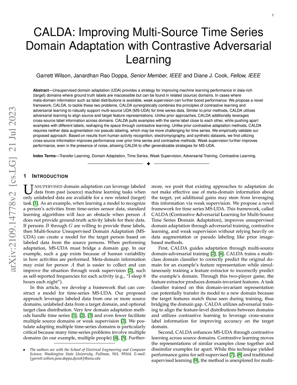 CALDA: Improving Multi-Source Time Series Domain Adaptation with