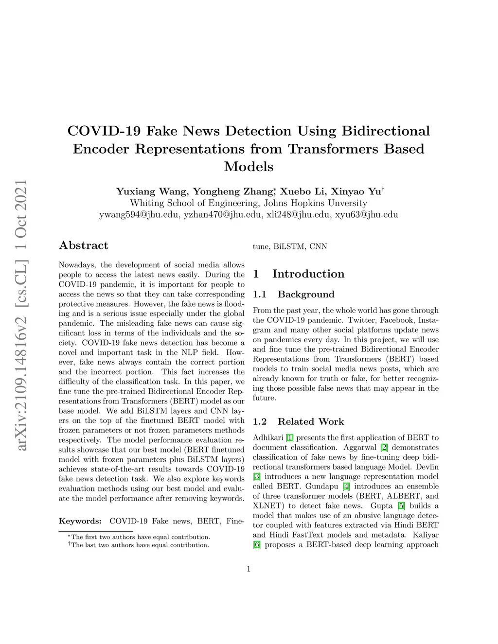 COVID-19 Fake News Detection Using Bidirectional Encoder Representations