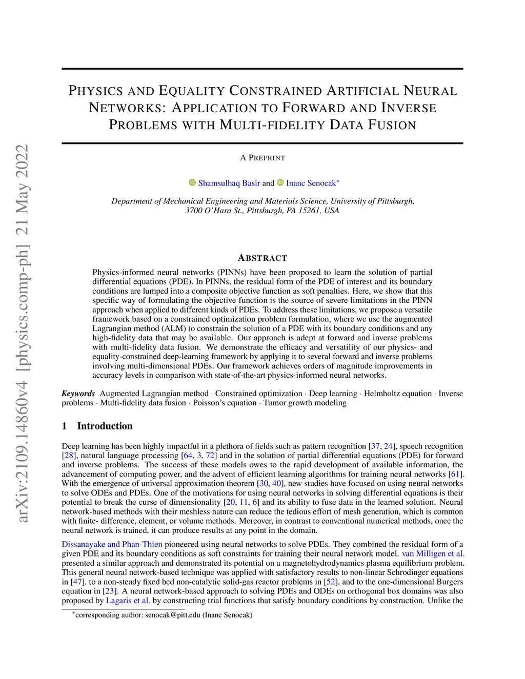 Physics and Equality Constrained Artificial Neural Networks: Application