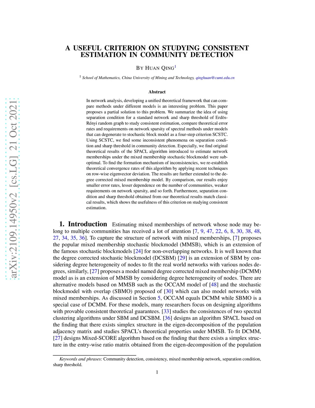 In network analysis, developing a unified theoretical framework that can compare methods under different models is an interesting problem. This paper proposes a partial solution to this problem. We summarize the idea of using separation condition for a standard network and sharp threshold of Erd\"os-R\ényi random graph to study consistent estimation, compare theoretical error rates and requirements on network sparsity of spectral methods under models that can degenerate to stochastic block model as a four-step criterion SCSTC. Using SCSTC, we find some inconsistent phenomena on separation condition and sharp threshold in community detection. Especially, we find original theoretical results of the SPACL algorithm introduced to estimate network memberships under the mixed membership stochastic blockmodel were sub-optimal. To find the formation mechanism of inconsistencies, we re-establish theoretical convergence rates of this algorithm by applying recent techniques on row-wise eigenvector deviation. The results are further extended to the degree corrected mixed membership model. By comparison, our results enjoy smaller error rates, lesser dependence on the number of communities, weaker requirements on network sparsity, and so forth. Furthermore, separation condition and sharp threshold obtained from our theoretical results match classical results, which shows the usefulness of this criterion on studying consistent estimation.