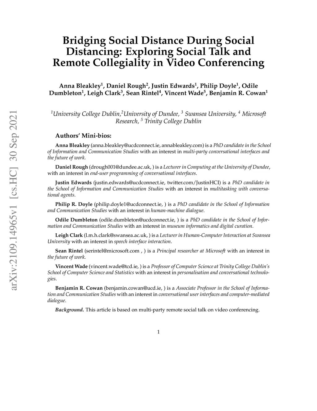 and Remote Collegiality in Video Conferencing