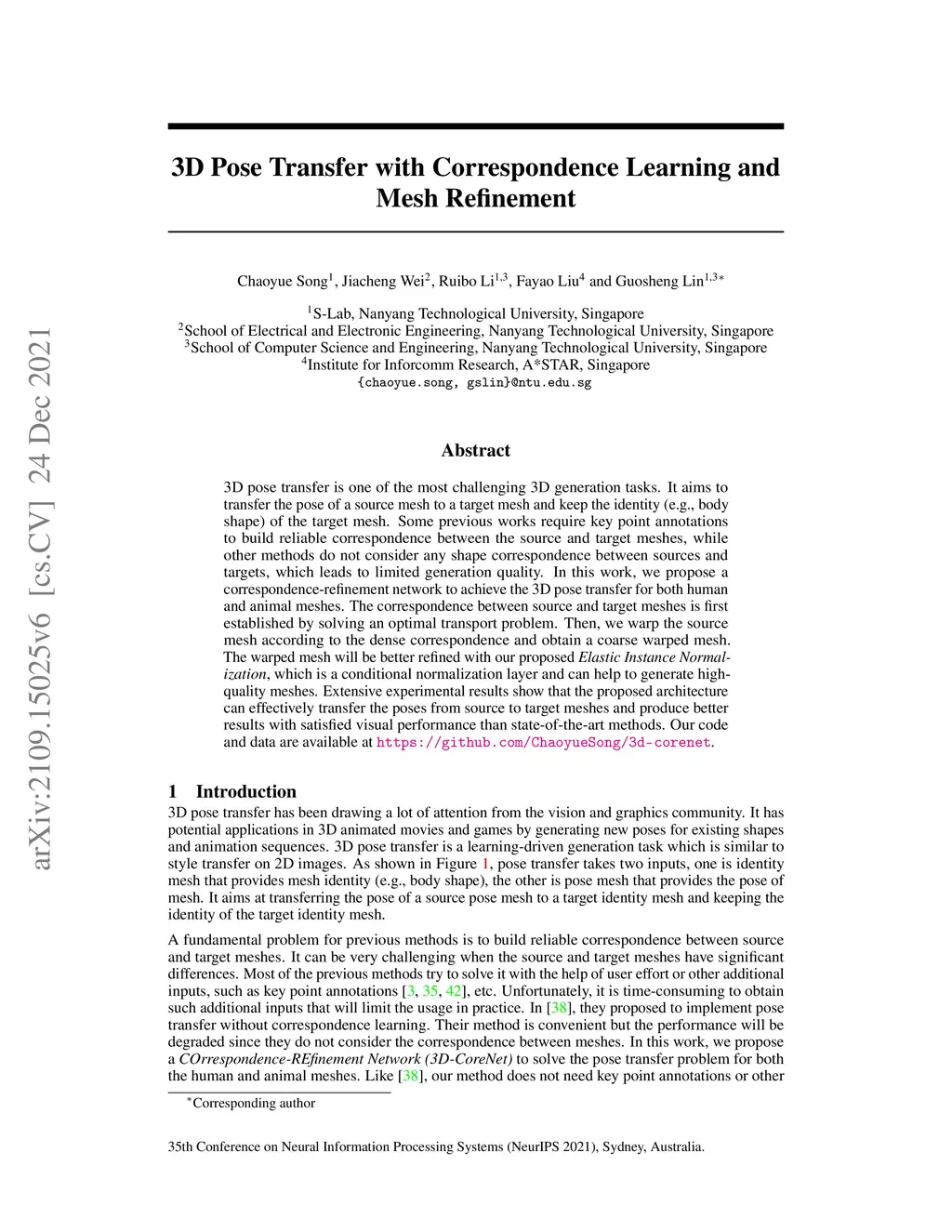 3D Pose Transfer with Correspondence Learning and Mesh Refinement