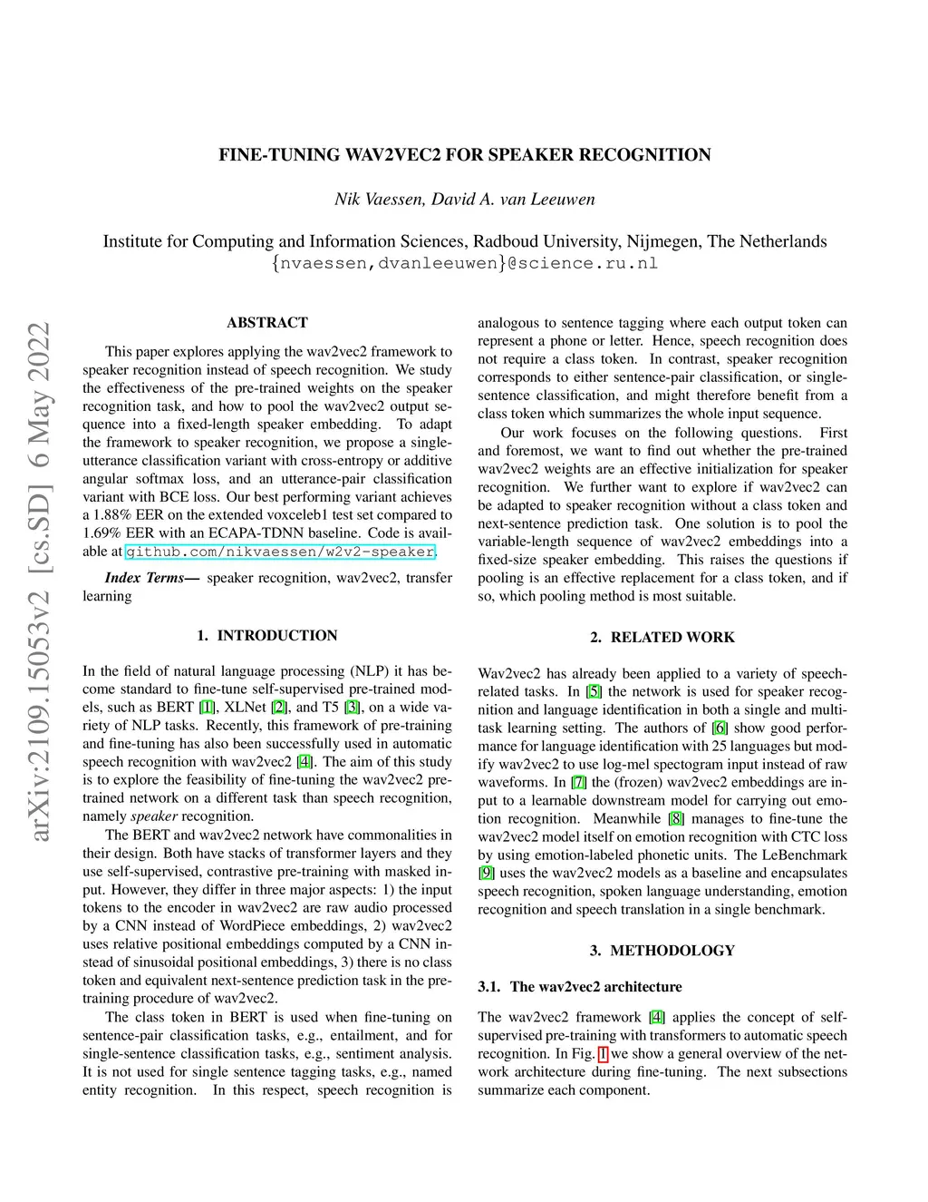 Fine-tuning wav2vec2 for speaker recognition