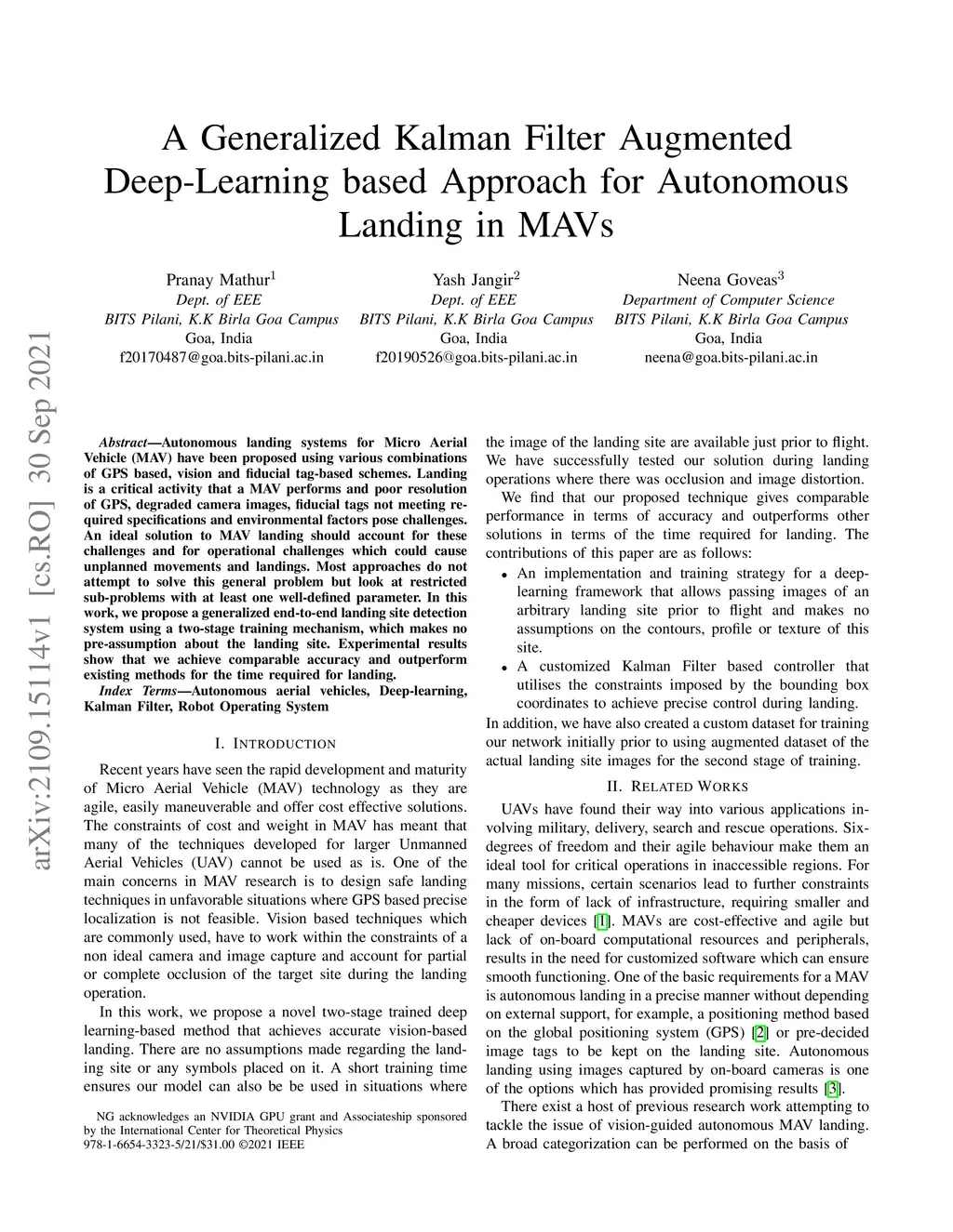 Autonomous landing systems for Micro Aerial Vehicles (MAV) have been proposed using various combinations of GPS-based, vision, and fiducial tag-based schemes. Landing is a critical activity that a MAV performs and poor resolution of GPS, degraded camera images, fiducial tags not meeting required specifications and environmental factors pose challenges. An ideal solution to MAV landing should account for these challenges and for operational challenges which could cause unplanned movements and landings. Most approaches do not attempt to solve this general problem but look at restricted sub-problems with at least one well-defined parameter. In this work, we propose a generalized end-to-end landing site detection system using a two-stage training mechanism, which makes no pre-assumption about the landing site. Experimental results show that we achieve comparable accuracy and outperform existing methods for the time required for landing.