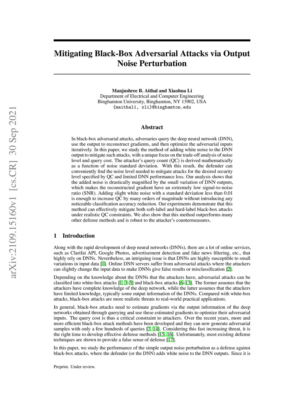 Mitigating Black-Box Adversarial Attacks via Output Noise Perturbation