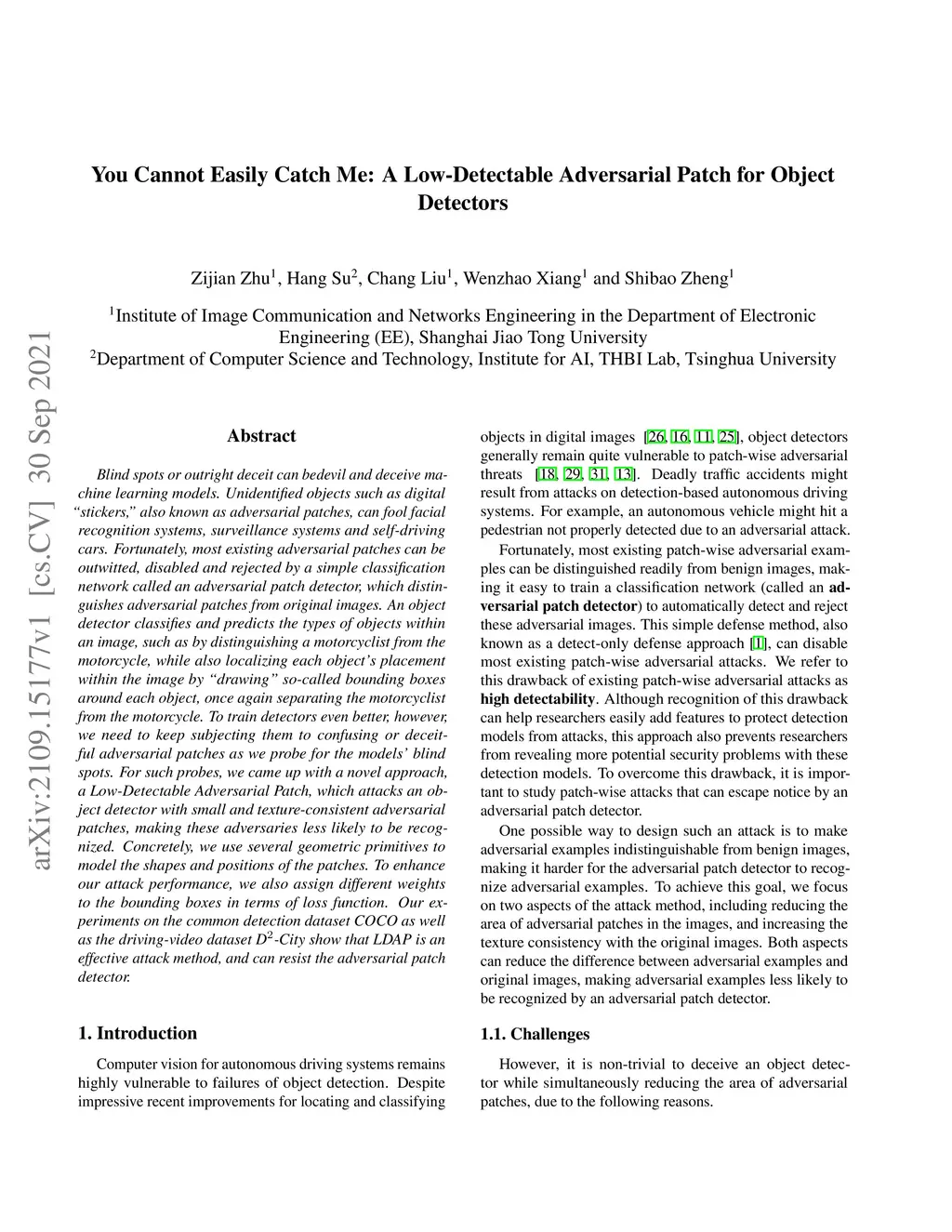 You Cannot Easily Catch Me: A Low-Detectable Adversarial Patch for