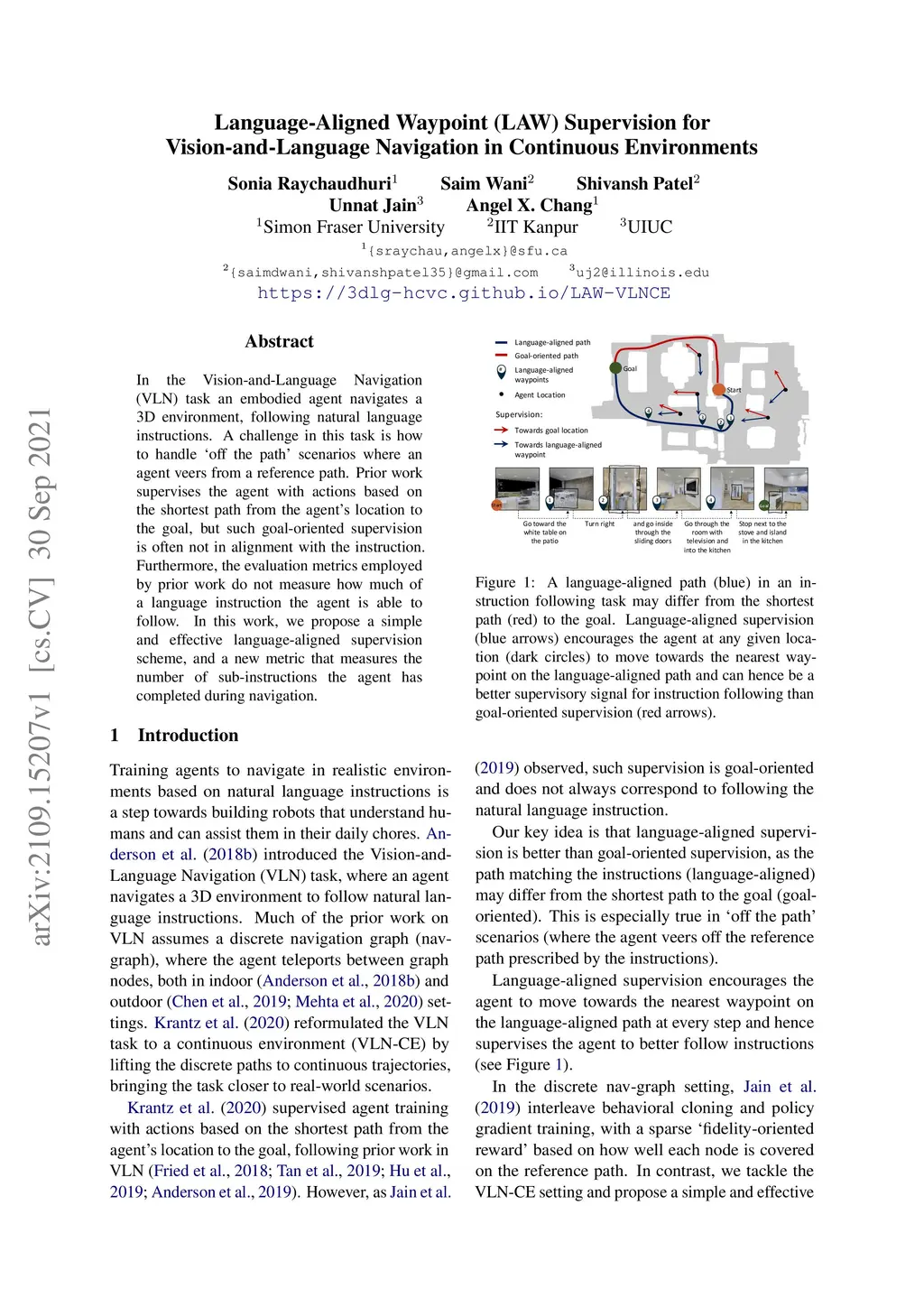 In the Vision-and-Language Navigation (VLN) task an embodied agent navigates a 3D environment, following natural language instructions. A challenge in this task is how to handle óff the path' scenarios where an agent veers from a reference path. Prior work supervises the agent with actions based on the shortest path from the agent's location to the goal, but such goal-oriented supervision is often not in alignment with the instruction. Furthermore, the evaluation metrics employed by prior work do not measure how much of a language instruction the agent is able to follow. In this work, we propose a simple and effective language-aligned supervision scheme, and a new metric that measures the number of sub-instructions the agent has completed during navigation.