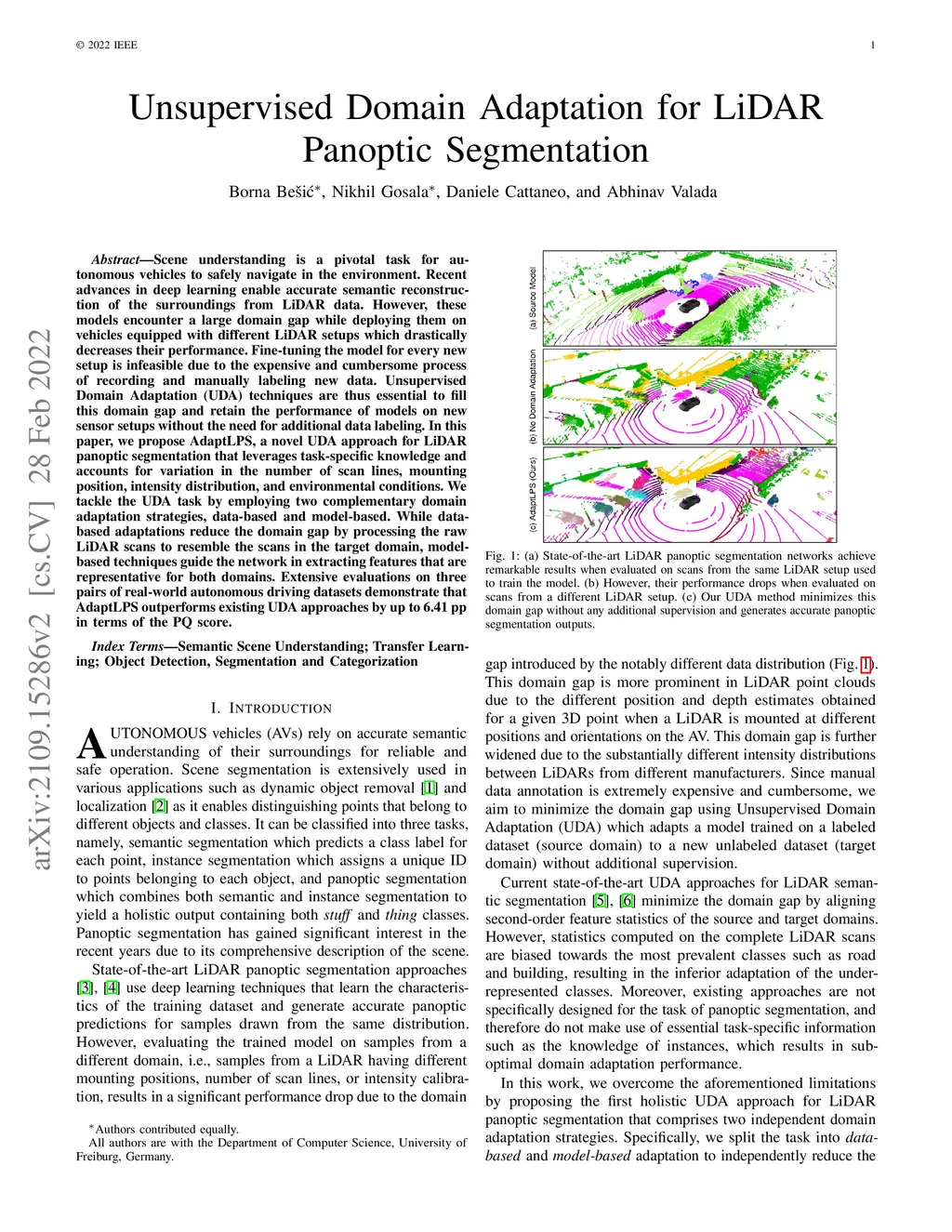 Unsupervised Domain Adaptation for LiDAR Panoptic Segmentation