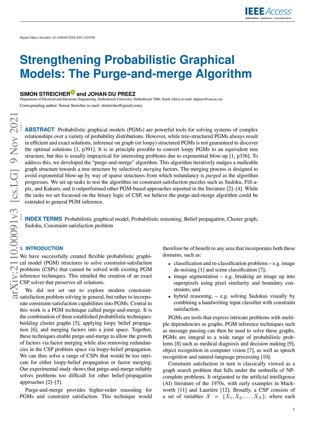 Probabilistic graphical models (PGMs) are powerful tools for solving systems of complex relationships over a variety of probability distributions. However, while tree-structured PGMs always result in efficient and exact solutions, inference on graph (or loopy) structured PGMs is not guaranteed to discover the optimal solutions. It is in principle possible to convert loopy PGMs to an equivalent tree structure, but this is usually impractical for interesting problems due to exponential blow-up. To address this, we developed the purge-and-merge algorithm. This algorithm iteratively nudges a malleable graph structure towards a tree structure by selectively merging factors. The merging process is designed to avoid exponential blow-up by way of sparse structures from which redundancy is purged as the algorithm progresses. We set up tasks to test the algorithm on constraint-satisfaction puzzles such as Sudoku, Fill-a-pix, and Kakuro, and it outperformed other PGM-based approaches reported in the literature. While the tasks we set focussed on the binary logic of CSP, we believe the purge-and-merge algorithm could be extended to general PGM inference.