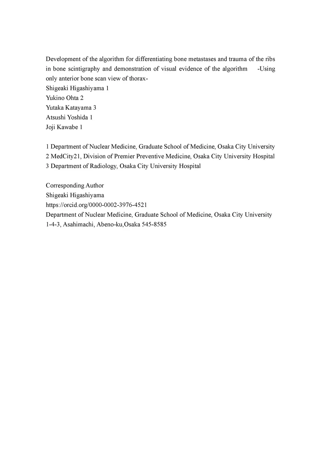 of the algorithm -- Using only anterior bone scan view of thorax