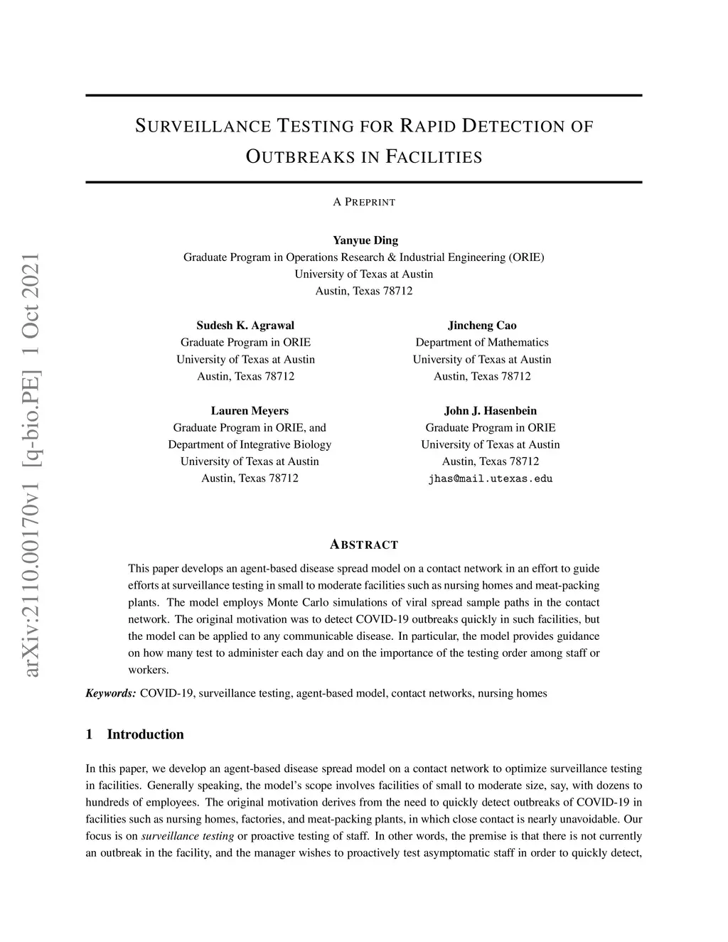 Surveillance Testing for Rapid Detection of Outbreaks in Facilities