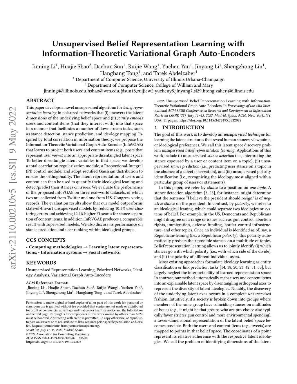 Unsupervised Belief Representation Learning with Information-Theoretic