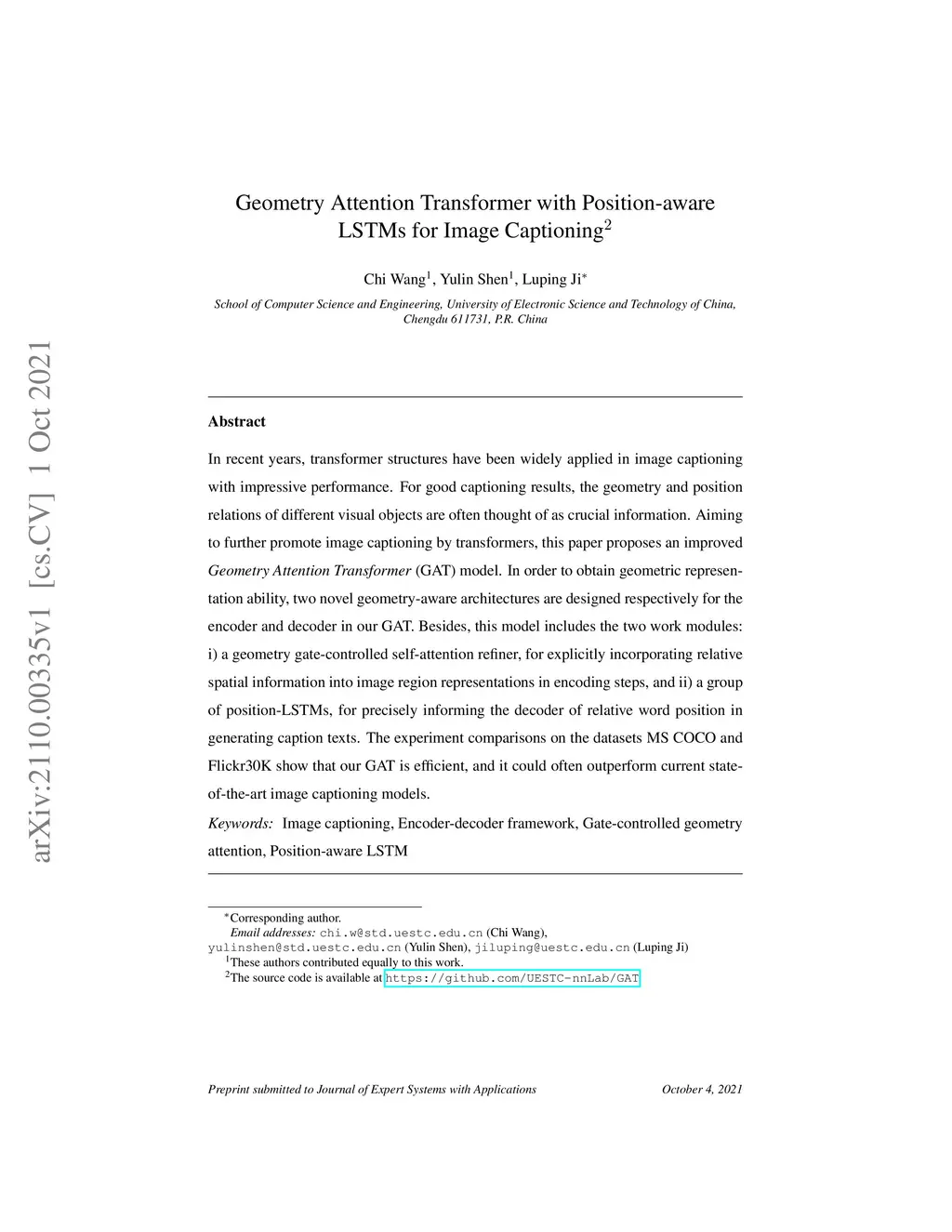 Geometry Attention Transformer with Position-aware LSTMs for Image