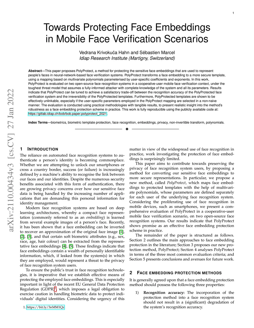 This paper proposes PolyProtect, a method for protecting the sensitive face embeddings that are used to represent people's faces in neural-network-based face verification systems. PolyProtect transforms a face embedding to a more secure template, using a mapping based on multivariate polynomials parameterised by user-specific coefficients and exponents. In this work, PolyProtect is evaluated on two open-source face recognition systems in a cooperative-user mobile face verification context, under the toughest threat model that assumes a fully-informed attacker with complete knowledge of the system and all its parameters. Results indicate that PolyProtect can be tuned to achieve a satisfactory trade-off between the recognition accuracy of the PolyProtected face verification system and the irreversibility of the PolyProtected templates. Furthermore, PolyProtected templates are shown to be effectively unlinkable, especially if the user-specific parameters employed in the PolyProtect mapping are selected in a non-naive manner. The evaluation is conducted using practical methodologies with tangible results, to present realistic insight into the method's robustness as a face embedding protection scheme in practice. This work is fully reproducible using the publicly available code at: https://gitlab.idiap.ch/bob/bob.paper.polyprotect_2021.