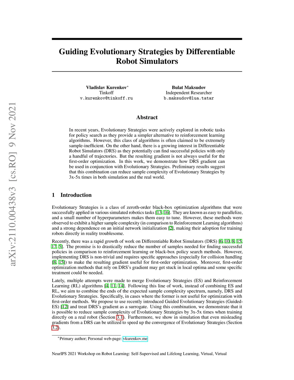 Guiding Evolutionary Strategies by Differentiable Robot Simulators