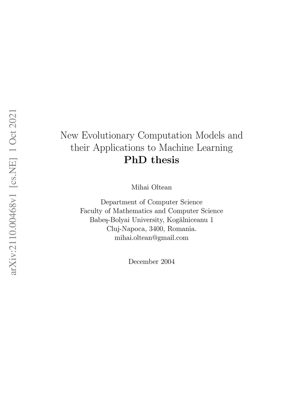 Automatic Programming is one of the most important areas of computer science research today. Hardware speed and capability have increased exponentially, but the software is years behind. The demand for software has also increased significantly, but it is still written in old fashion: by using humans. There are multiple problems when the work is done by humans: cost, time, quality. It is costly to pay humans, it is hard to keep them satisfied for a long time, it takes a lot of time to teach and train them and the quality of their output is in most cases low (in software, mostly due to bugs). The real advances in human civilization appeared during the industrial revolutions. Before the first revolution, most people worked in agriculture. Today, very few percent of people work in this field. A similar revolution must appear in the computer programming field. Otherwise, we will have so many people working in this field as we had in the past working in agriculture. How do people know how to write computer programs? Very simple: by learning. Can we do the same for software? Can we put the software to learn how to write software? It seems that is possible (to some degree) and the term is called Machine Learning. It was first coined in 1959 by the first person who made a computer perform a serious learning task, namely, Arthur Samuel. However, things are not so easy as in humans (well, truth to be said - for some humans it is impossible to learn how to write software). So far we do not have software that can learn perfectly to write software. We have some particular cases where some programs do better than humans, but the examples are sporadic at best. Learning from experience is difficult for computer programs. Instead of trying to simulate how humans teach humans how to write computer programs, we can simulate nature.