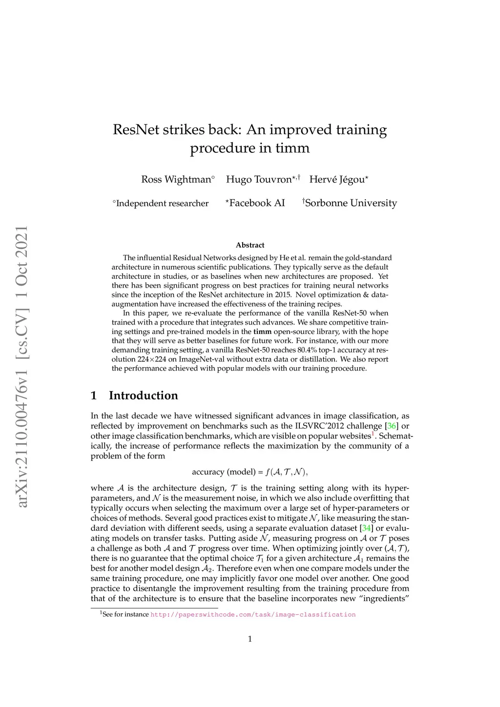 ResNet strikes back: An improved training procedure in timm