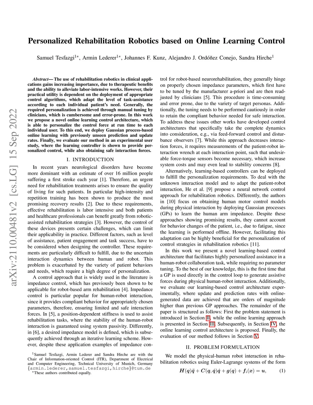 Personalized Rehabilitation Robotics based on Online Learning Control