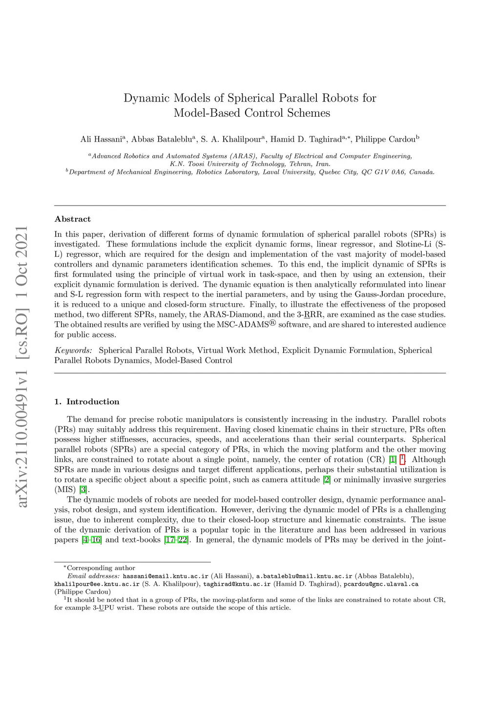 Dynamic Models of Spherical Parallel Robots for Model-Based Control