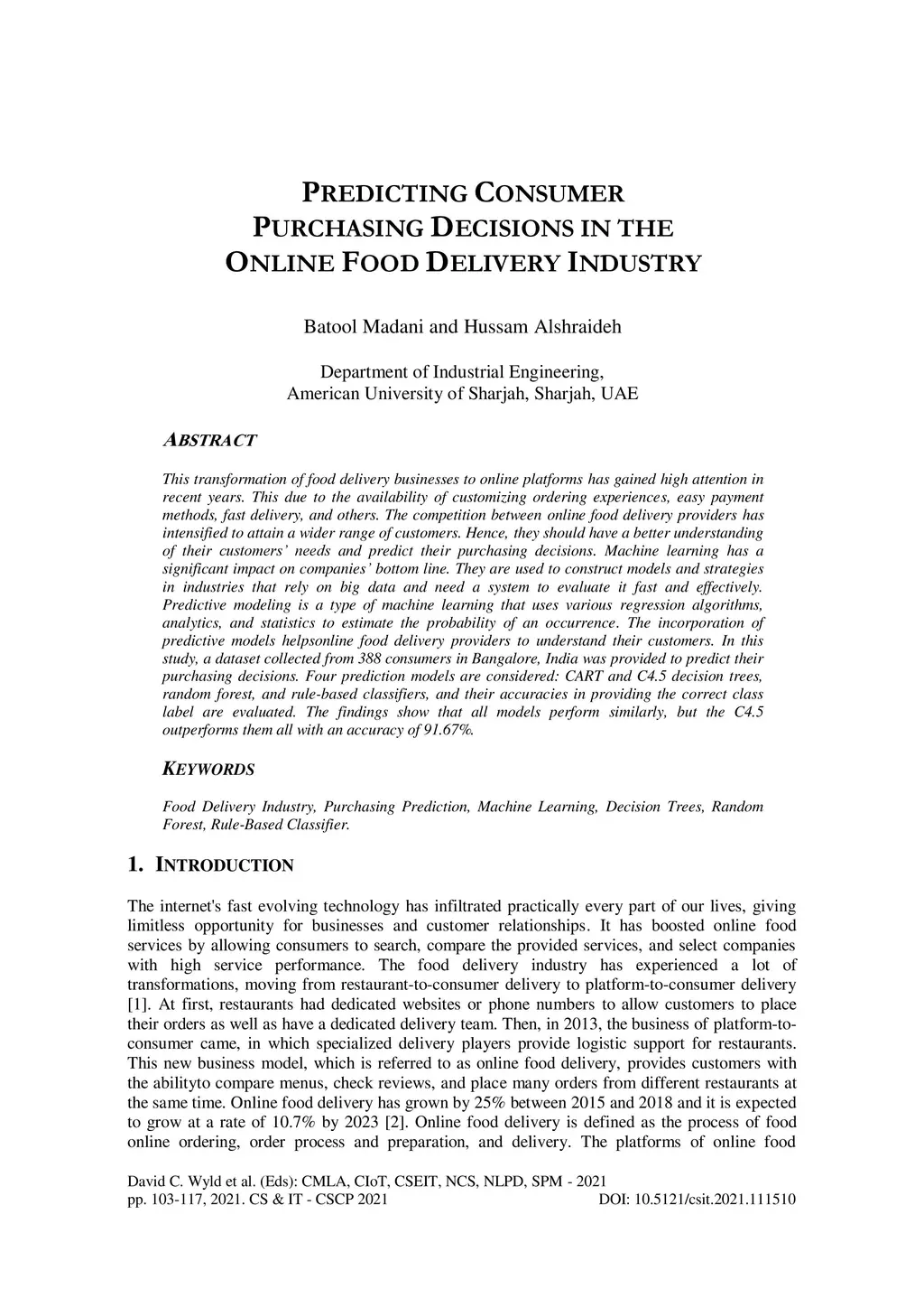 Predicting Consumer Purchasing Decision in The Online Food Delivery
