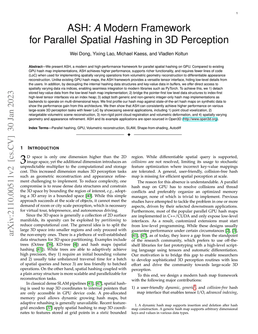 ASH: A Modern Framework for Parallel Spatial Hashing in 3D Perception