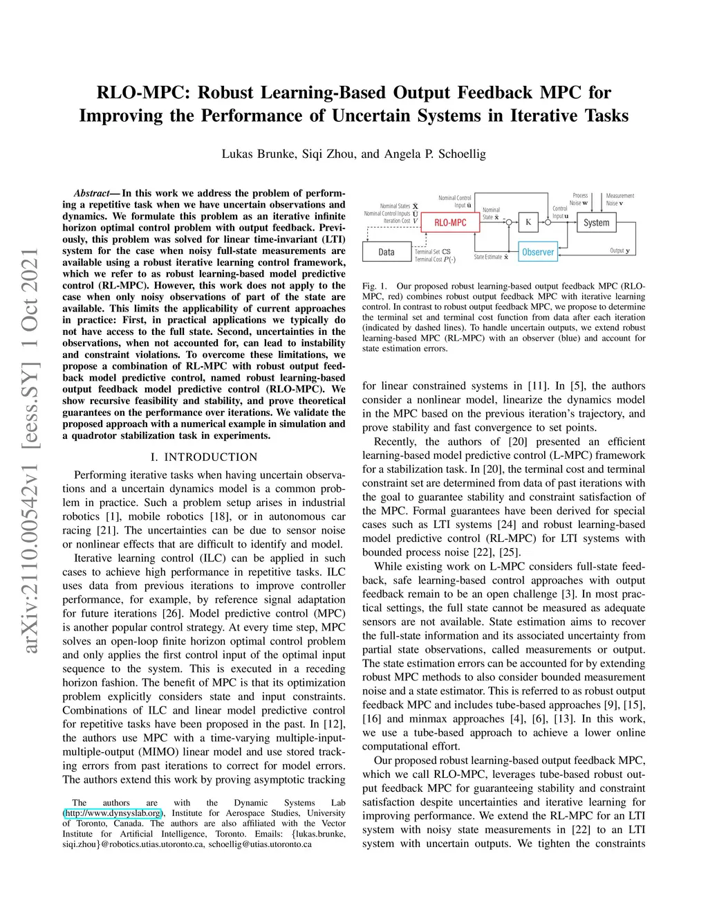RLO-MPC: Robust Learning-Based Output Feedback MPC for Improving the