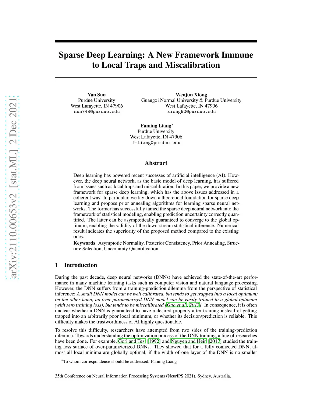 Sparse Deep Learning: A New Framework Immune to Local Traps and