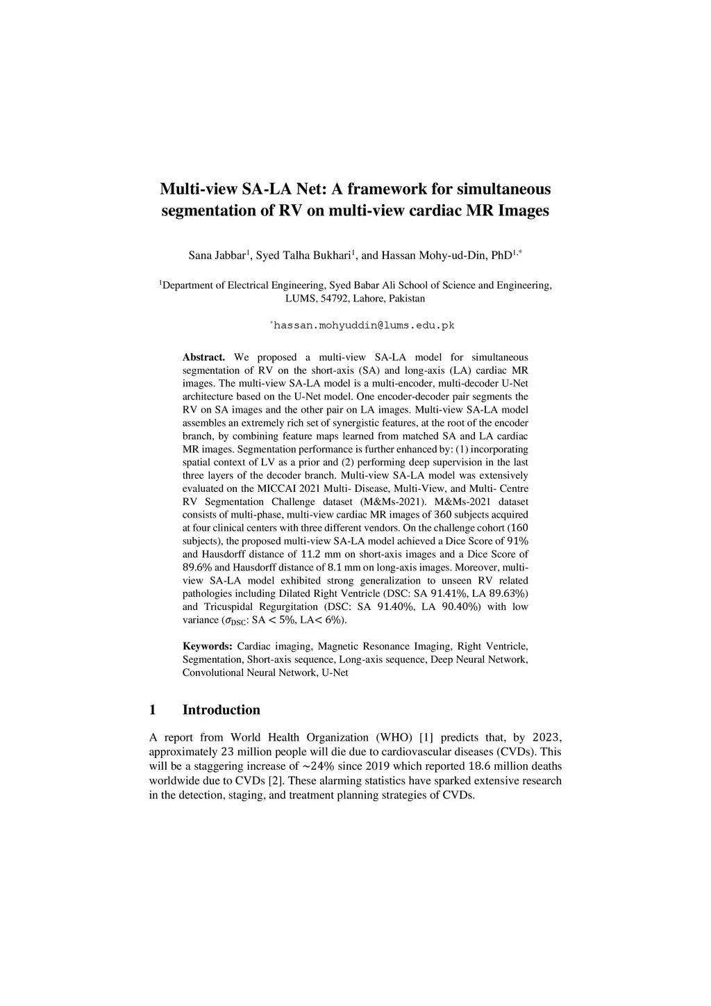 Multi-view SA-LA Net: A framework for simultaneous segmentation of RV on
