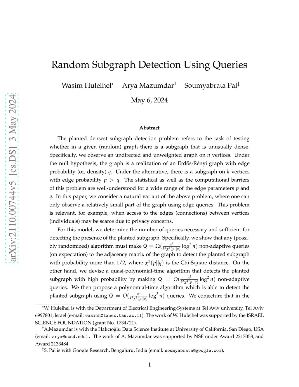 The planted densest subgraph detection problem refers to the task of testing whether in a given (random) graph there is a subgraph that is unusually dense. Specifically, we observe an undirected and unweighted graph on vertices. Under the null hypothesis, the graph is a realization of an Erd\H{o}s-R\'{e}nyi graph with edge probability (or, density) . Under the alternative, there is a subgraph on vertices with edge probability . The statistical as well as the computational barriers of this problem are well-understood for a wide range of the edge parameters and . In this paper, we consider a natural variant of the above problem, where one can only observe a relatively small part of the graph using adaptive edge queries. For this model, we determine the number of queries necessary and sufficient (accompanied with a quasi-polynomial optimal algorithm) for detecting the presence of the planted subgraph. We also propose a polynomial-time algorithm which is able to detect the planted subgraph, albeit with more queries compared to the above lower bound. We conjecture that in the leftover regime, no polynomial-time algorithms exist. Our results resolve two open questions posed in the past literature.
