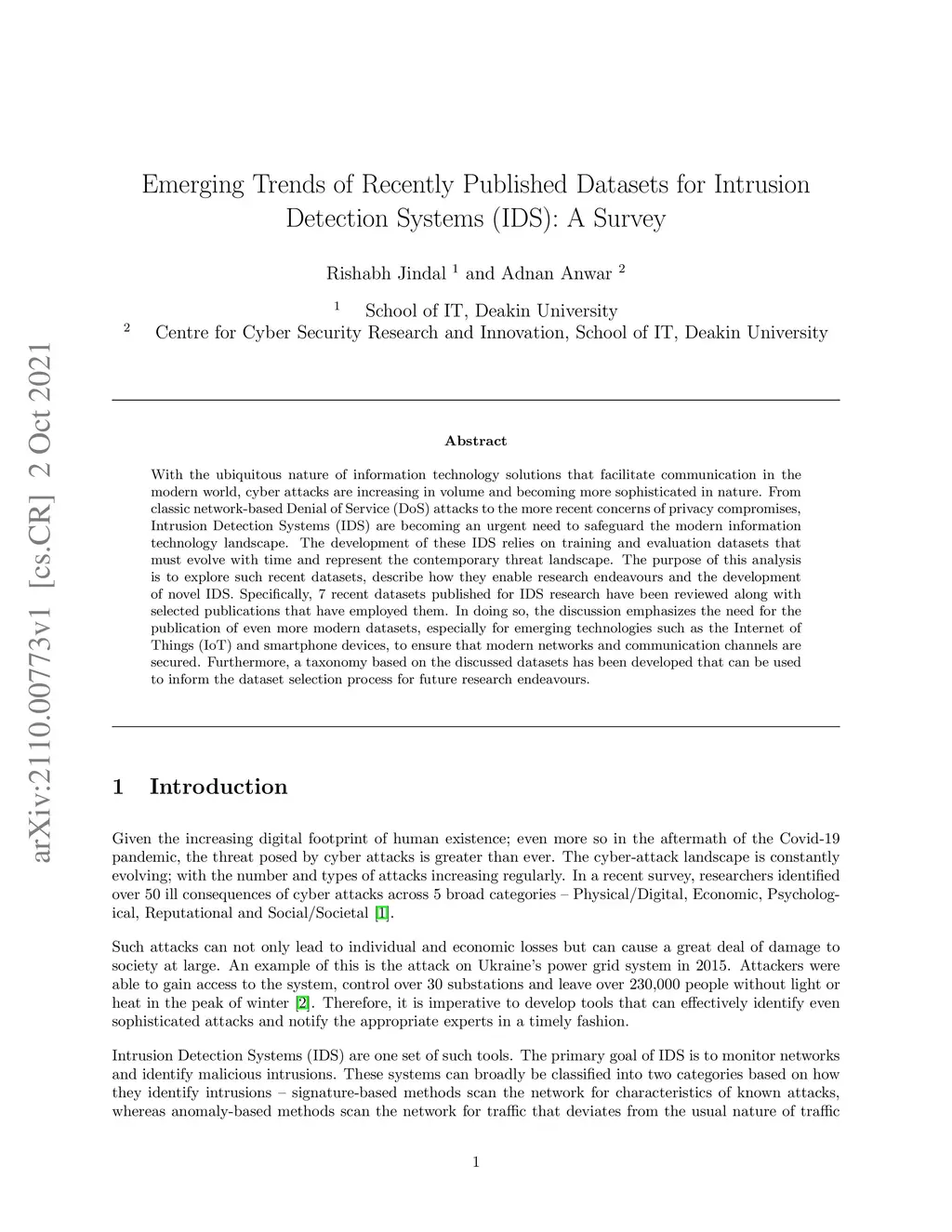 Emerging Trends of Recently Published Datasets for Intrusion Detection