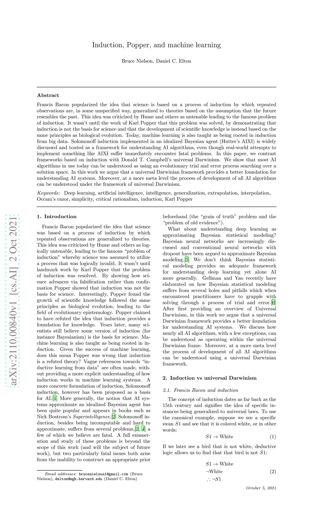 Francis Bacon popularized the idea that science is based on a process of induction by which repeated observations are, in some unspecified way, generalized to theories based on the assumption that the future resembles the past. This idea was criticized by Hume and others as untenable leading to the famous problem of induction. It wasn't until the work of Karl Popper that this problem was solved, by demonstrating that induction is not the basis for science and that the development of scientific knowledge is instead based on the same principles as biological evolution. Today, machine learning is also taught as being rooted in induction from big data. Solomonoff induction implemented in an idealized Bayesian agent (Hutter's AIXI) is widely discussed and touted as a framework for understanding AI algorithms, even though real-world attempts to implement something like AIXI immediately encounter fatal problems. In this paper, we contrast frameworks based on induction with Donald T. Campbell's universal Darwinism. We show that most AI algorithms in use today can be understood as using an evolutionary trial and error process searching over a solution space. In this work we argue that a universal Darwinian framework provides a better foundation for understanding AI systems. Moreover, at a more meta level the process of development of all AI algorithms can be understood under the framework of universal Darwinism.