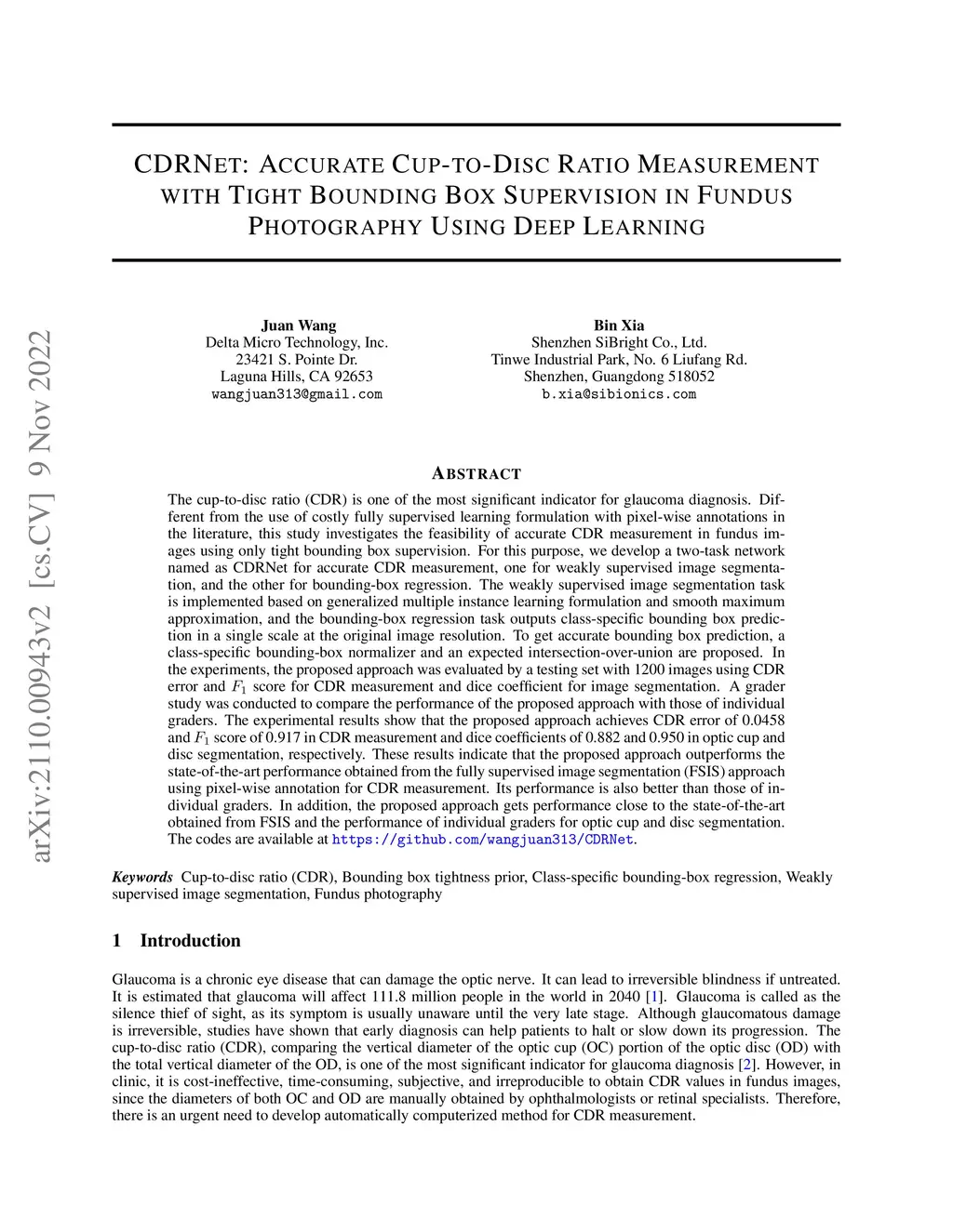 CDRNet: Accurate Cup-to-Disc Ratio Measurement with Tight Bounding Box