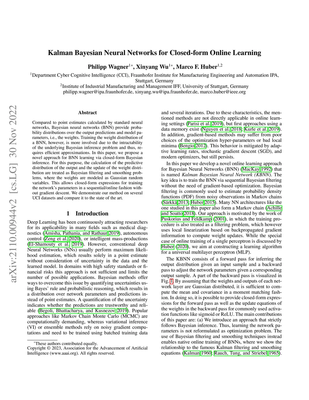 Kalman Bayesian Neural Networks for Closed-form Online Learning