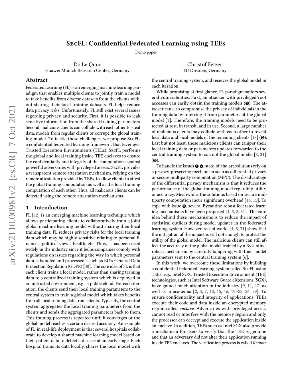 SecFL: Confidential Federated Learning using TEEs