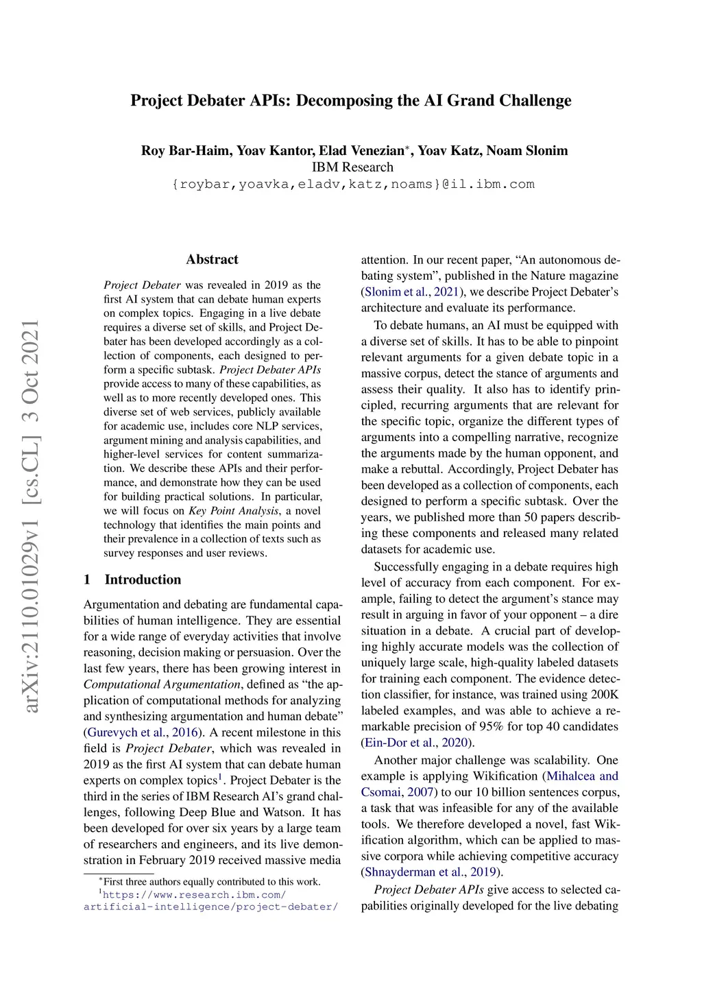 Project Debater APIs: Decomposing the AI Grand Challenge