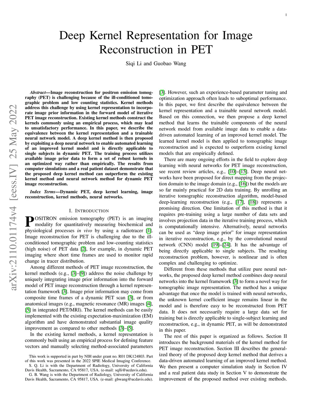 Deep Kernel Representation for Image Reconstruction in PET