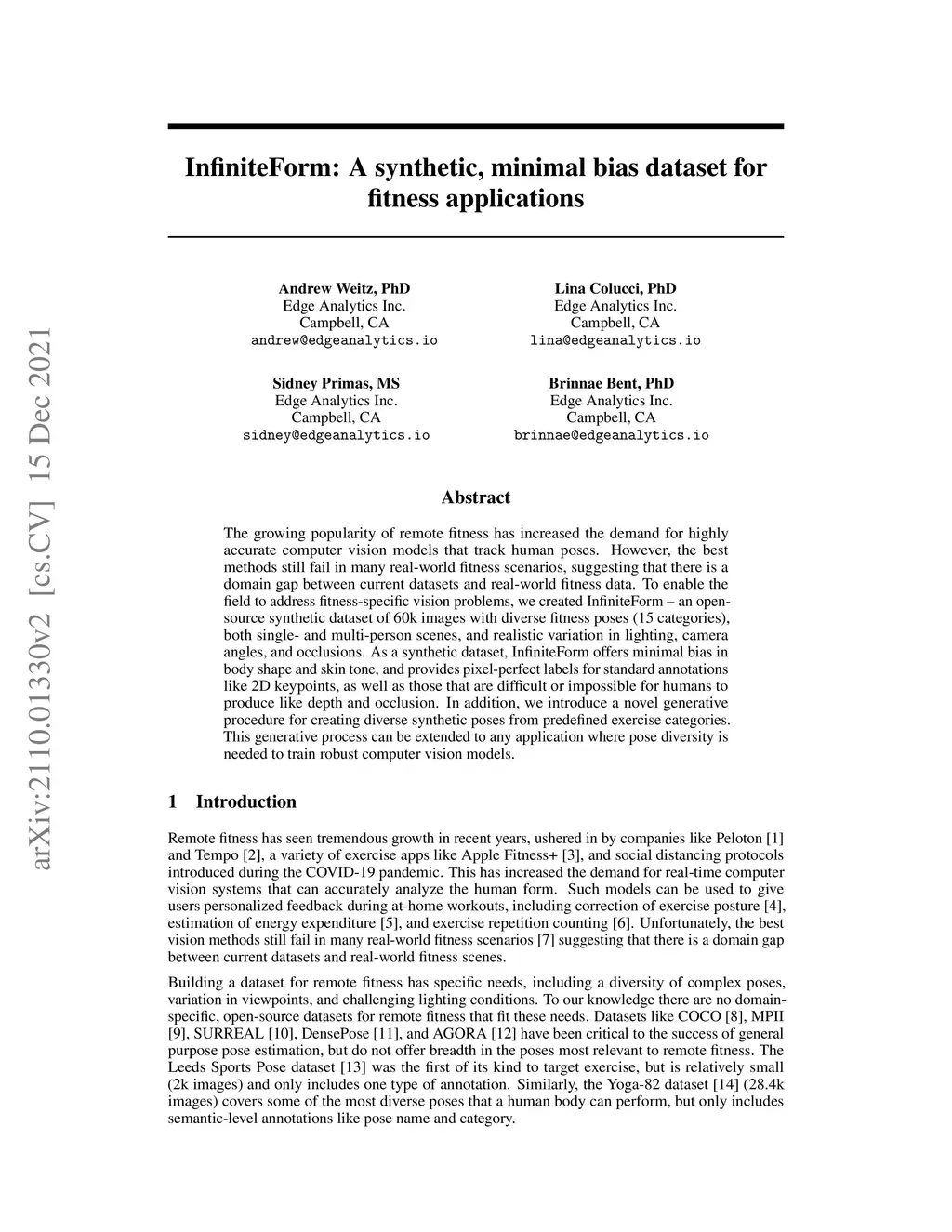 InfiniteForm: A synthetic, minimal bias dataset for fitness applications