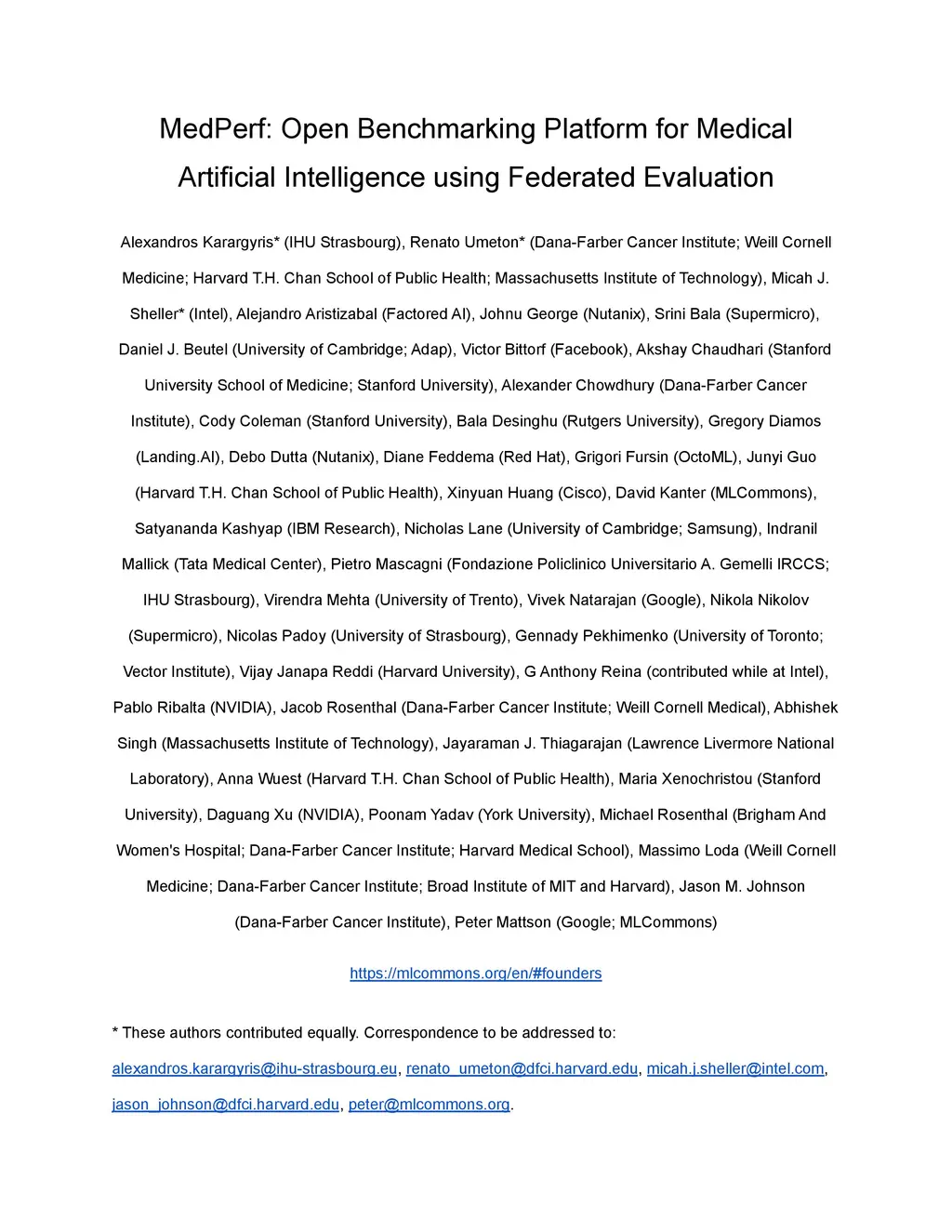 MedPerf: Open Benchmarking Platform for Medical Artificial Intelligence