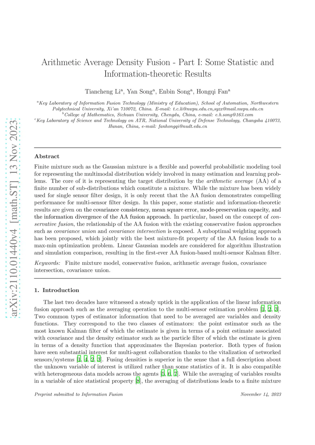 Arithmetic Average Density Fusion -- Part I: Some Statistic and