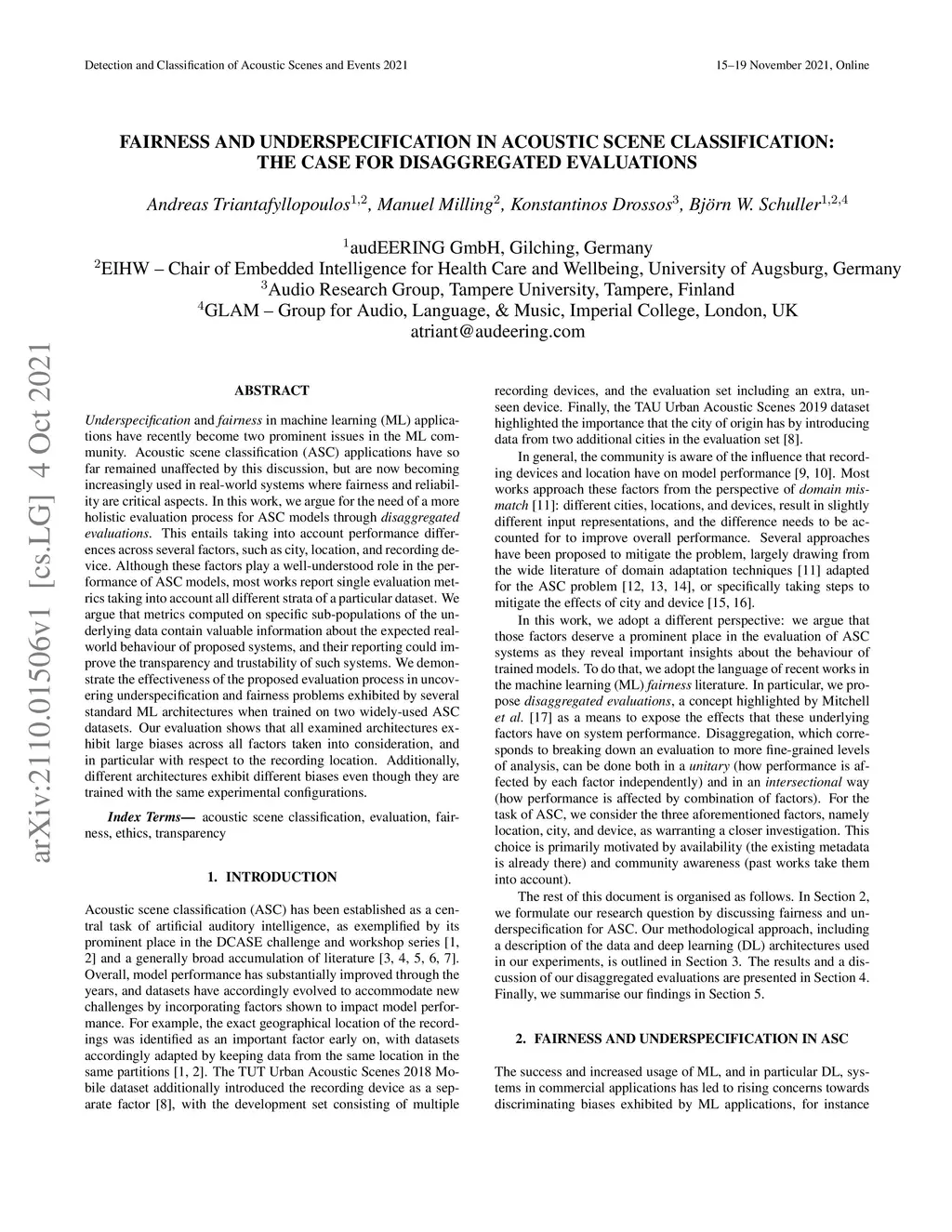Underspecification and fairness in machine learning (ML) applications have recently become two prominent issues in the ML community. Acoustic scene classification (ASC) applications have so far remained unaffected by this discussion, but are now becoming increasingly used in real-world systems where fairness and reliability are critical aspects. In this work, we argue for the need of a more holistic evaluation process for ASC models through disaggregated evaluations. This entails taking into account performance differences across several factors, such as city, location, and recording device. Although these factors play a well-understood role in the performance of ASC models, most works report single evaluation metrics taking into account all different strata of a particular dataset. We argue that metrics computed on specific sub-populations of the underlying data contain valuable information about the expected real-world behaviour of proposed systems, and their reporting could improve the transparency and trustability of such systems. We demonstrate the effectiveness of the proposed evaluation process in uncovering underspecification and fairness problems exhibited by several standard ML architectures when trained on two widely-used ASC datasets. Our evaluation shows that all examined architectures exhibit large biases across all factors taken into consideration, and in particular with respect to the recording location. Additionally, different architectures exhibit different biases even though they are trained with the same experimental configurations.