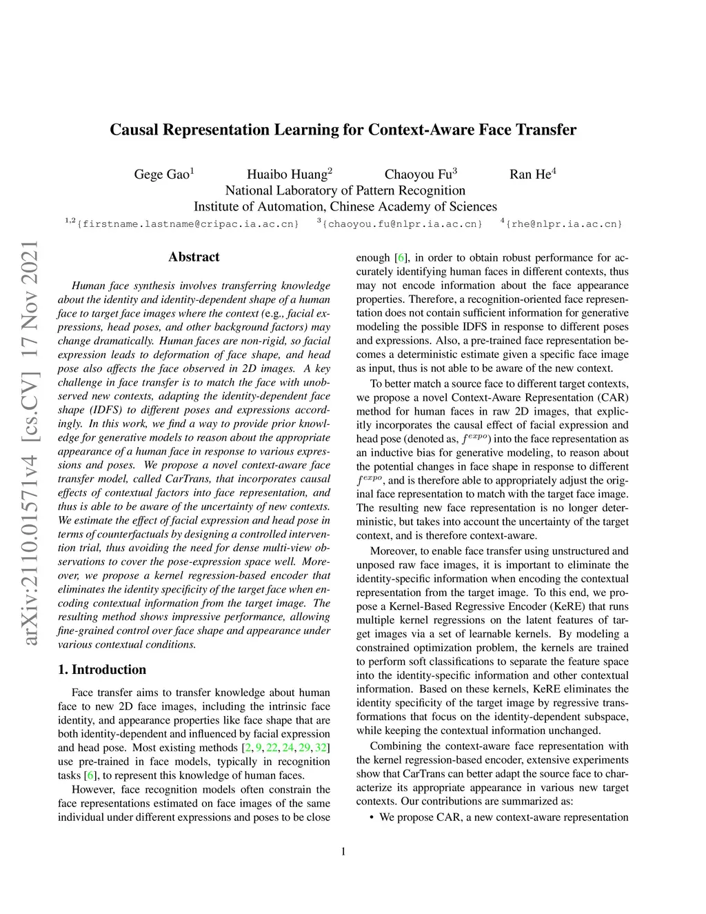 Learning Causal Representation for Face Transfer across Large Appearance